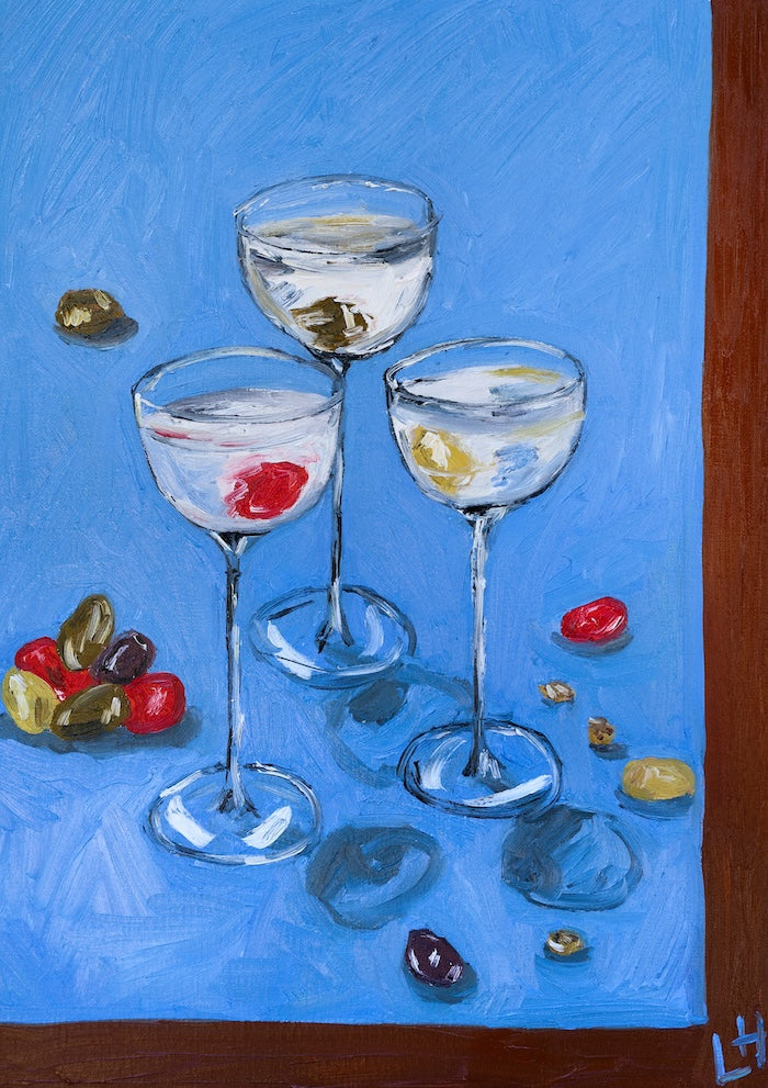 "Rainbow Olive Martini" was painted with Oil on Canvas, and the reproduction of this original piece is limited to 25 editions per size.