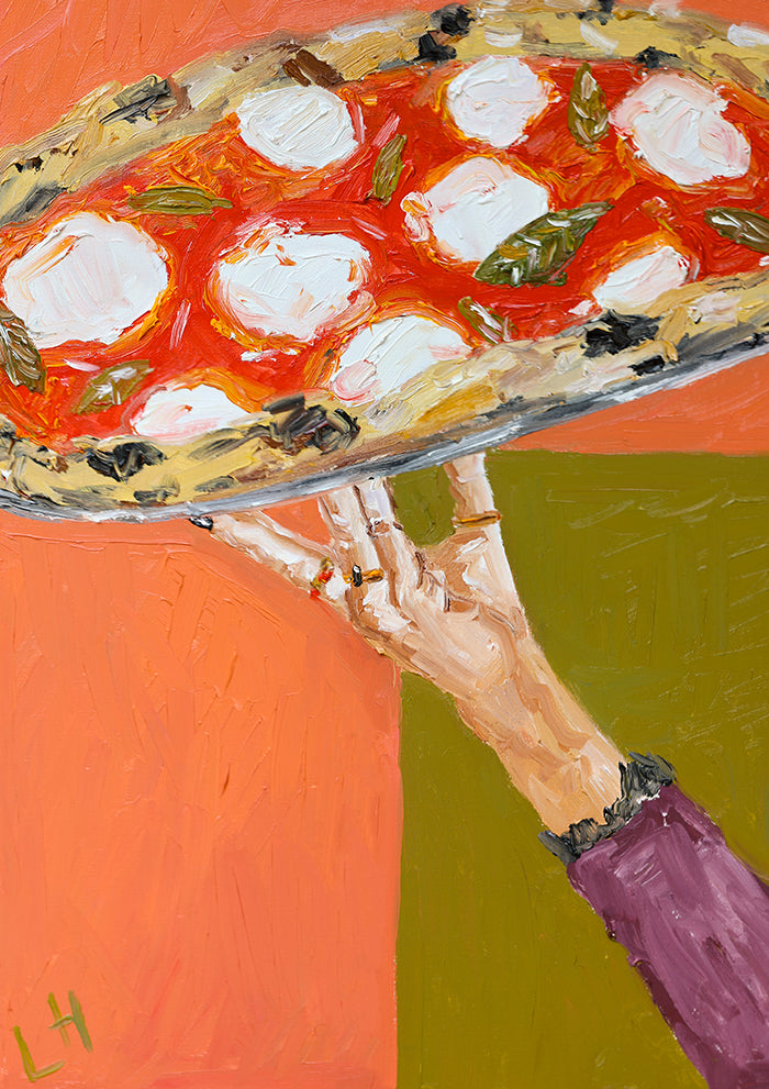 "Pizza's Ready" was painted with Oil on Canvas, and the reproduction of this original piece is limited to 25 editions per size.