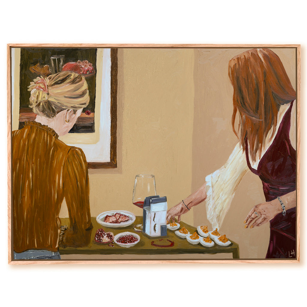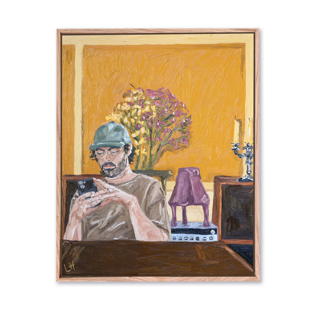 oil on canvas paintings framed in raw oak