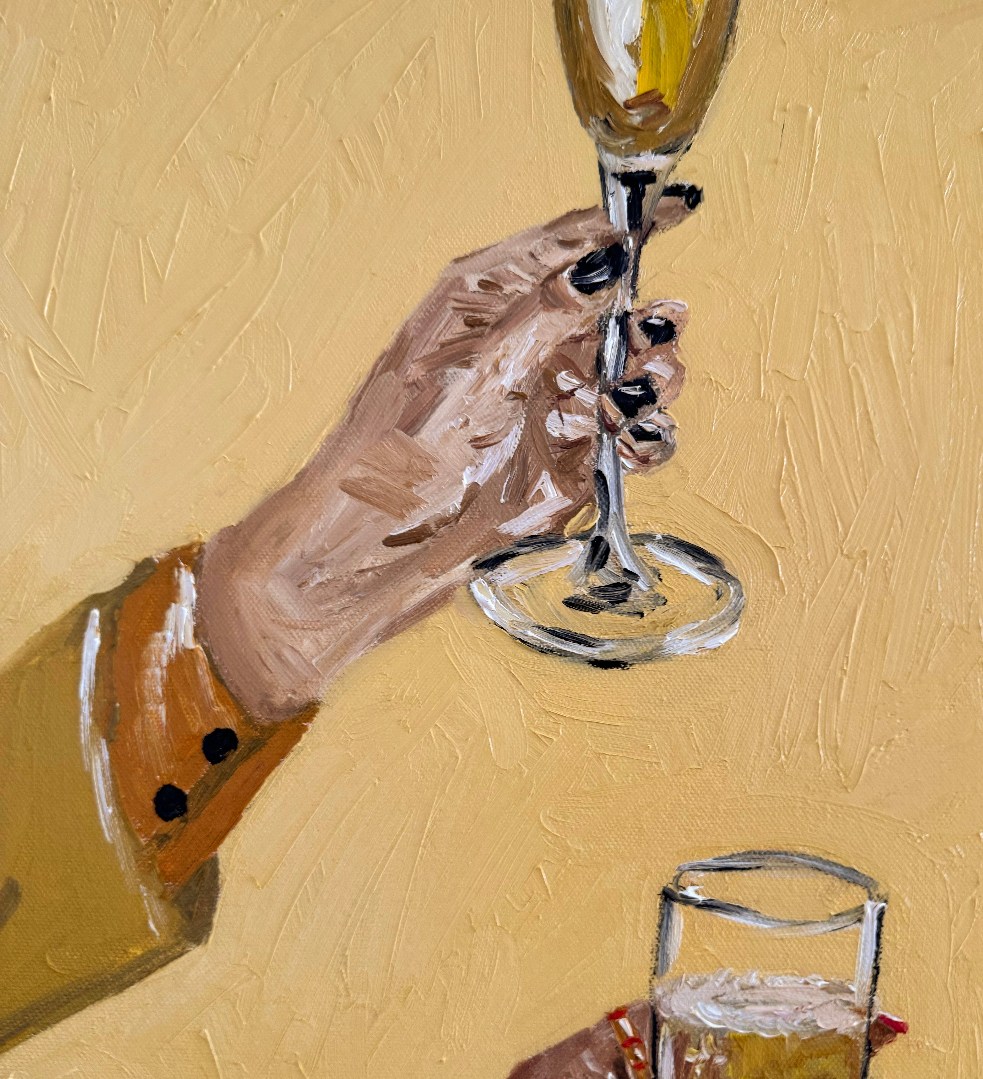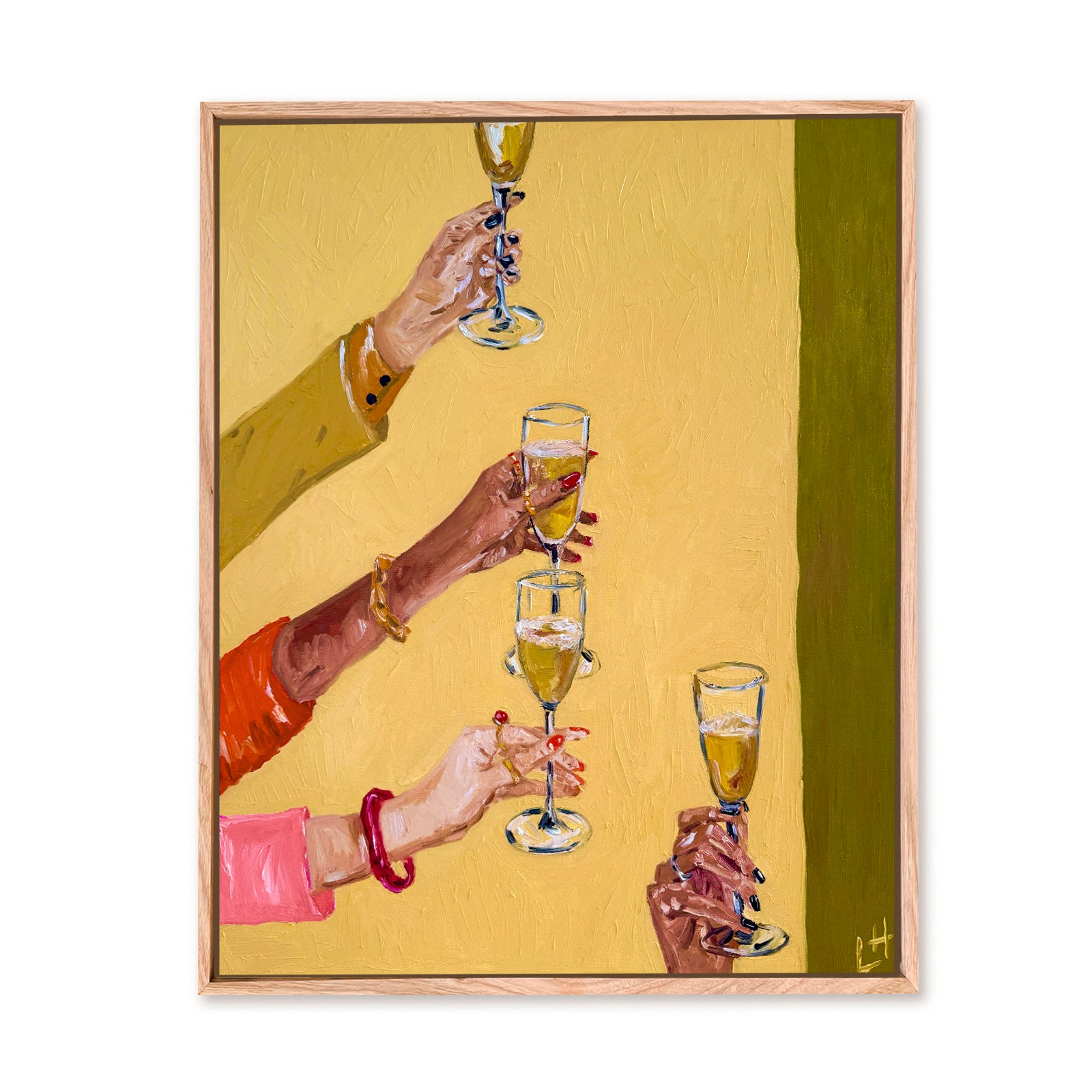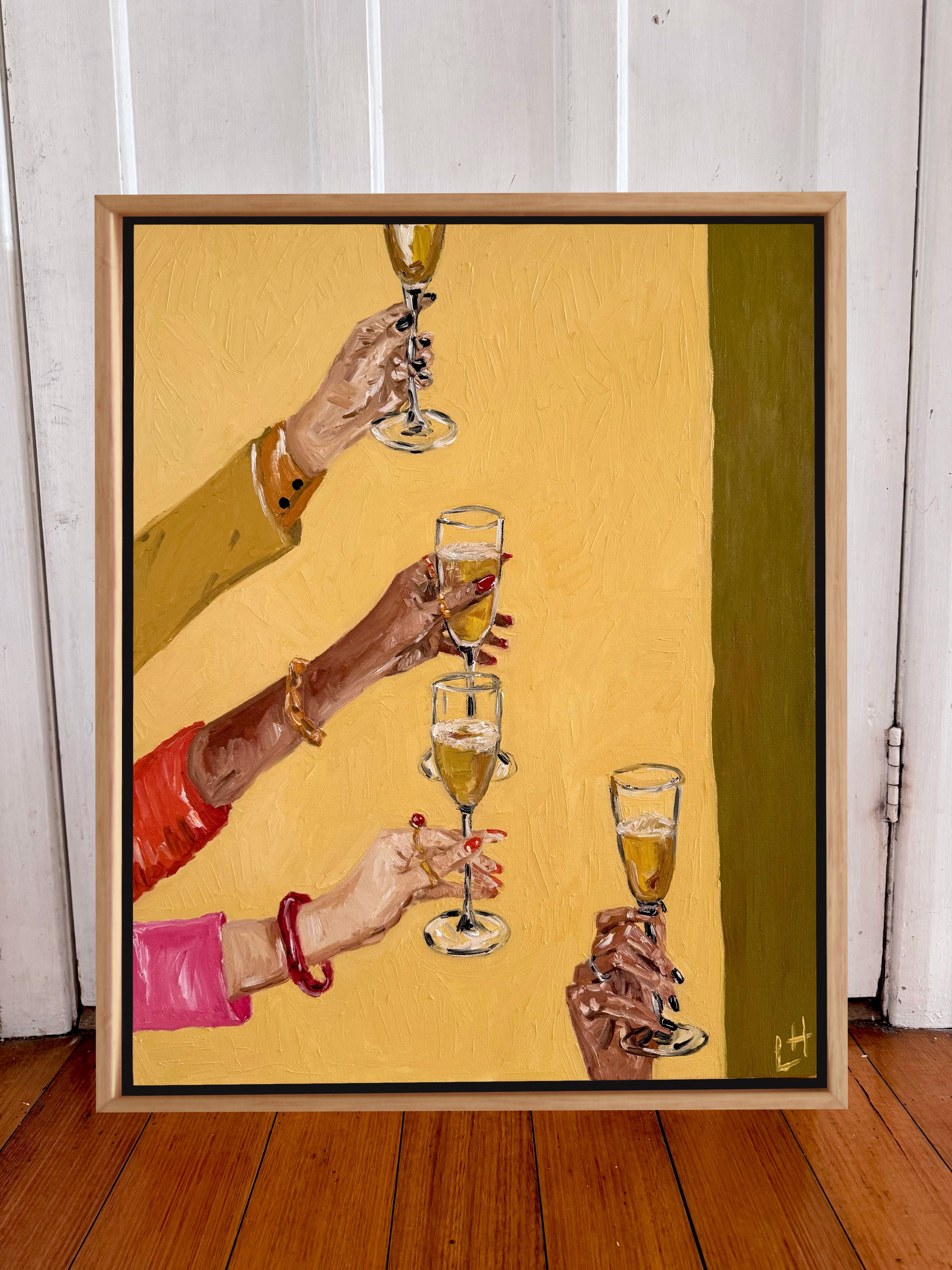 "Raise a Glass" is an original painted with Oil on Canvas, framed in raw Victorian Ash.