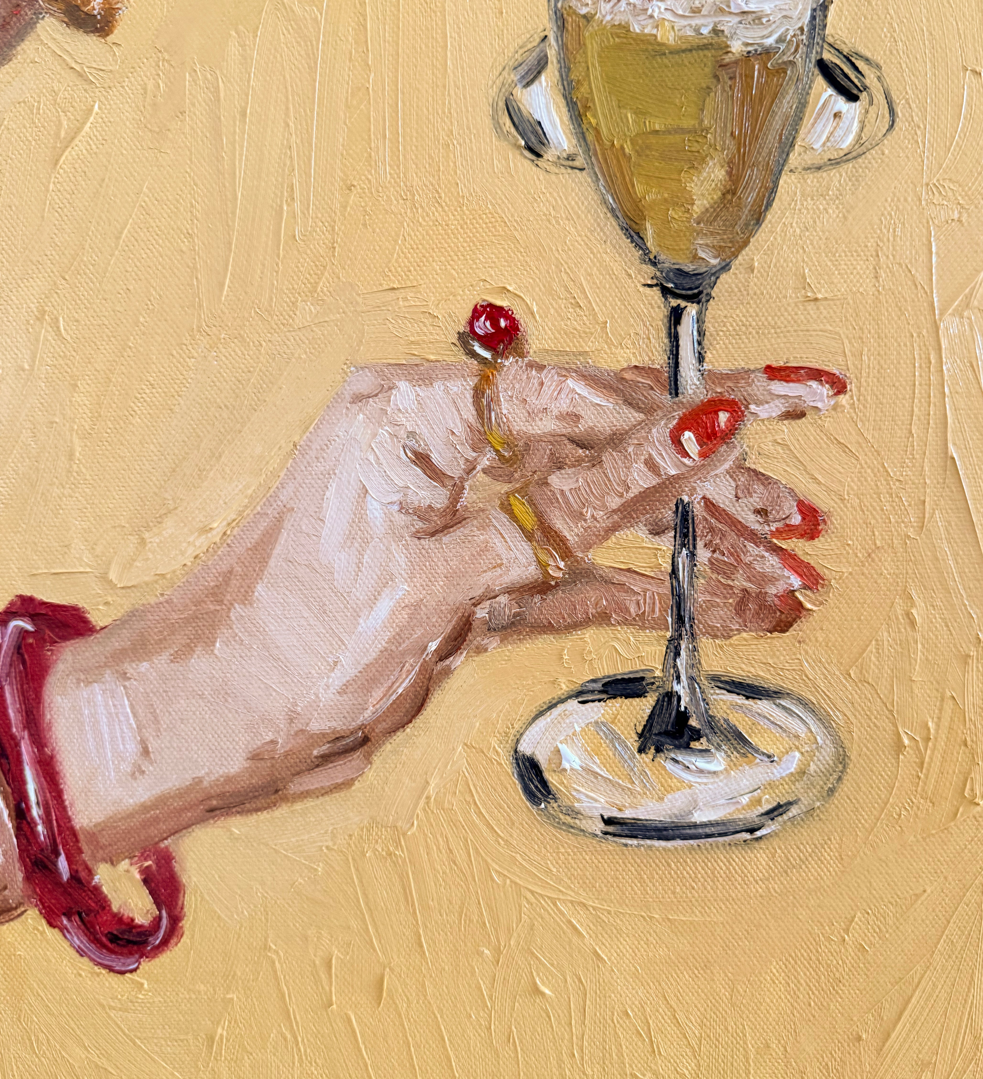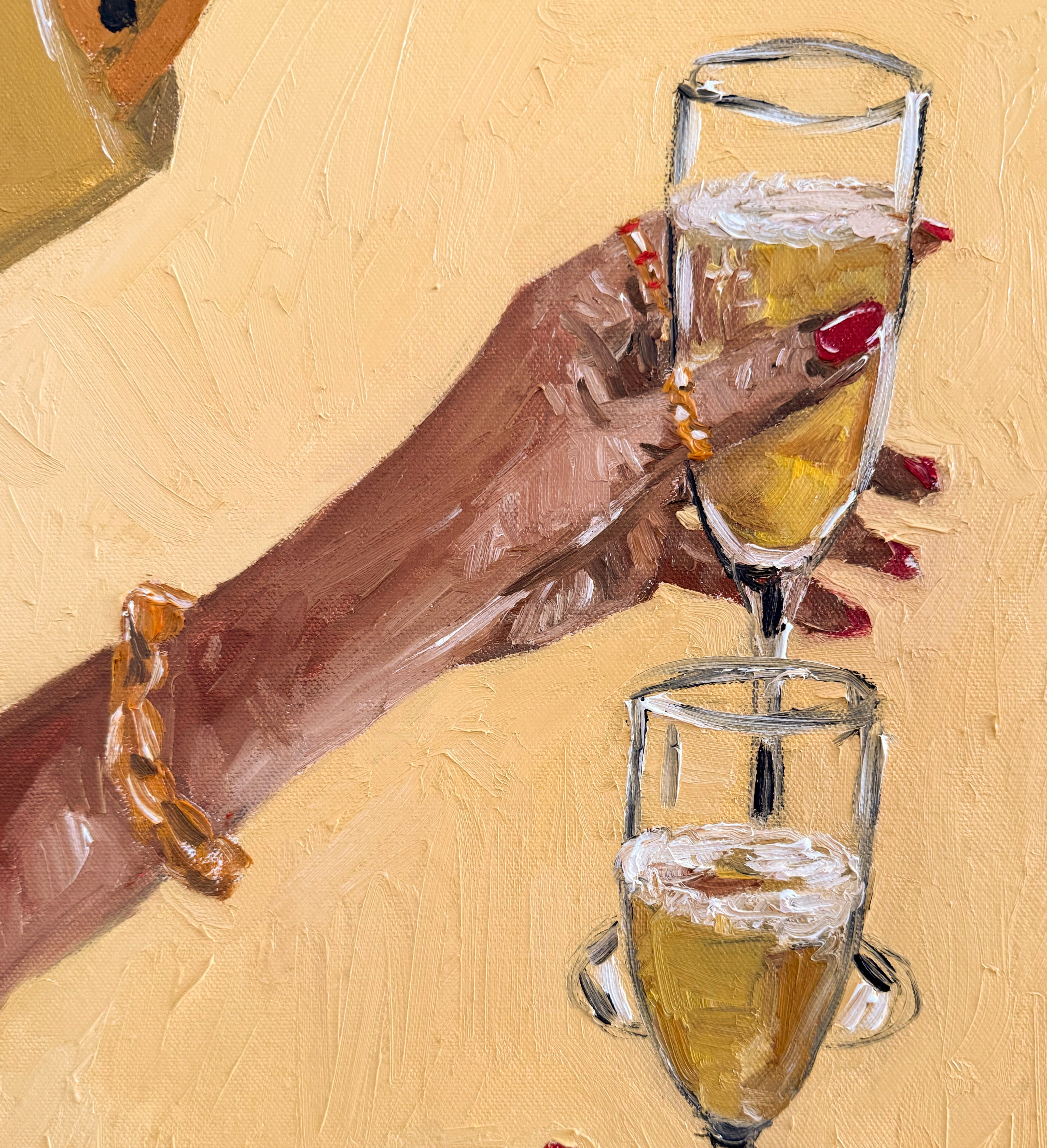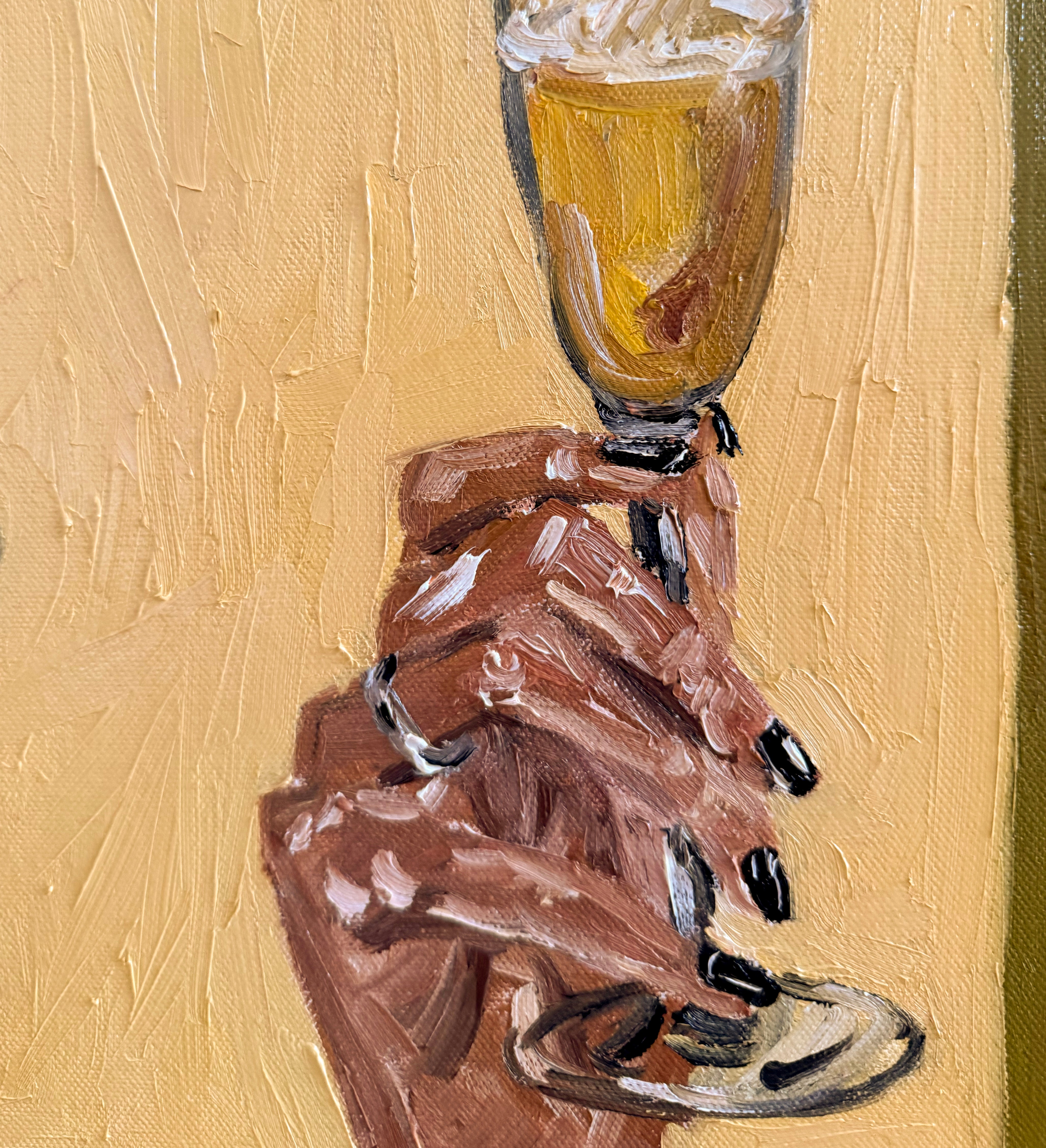 "Raise a Glass" is an original painted with Oil on Canvas, framed in raw Victorian Ash.
